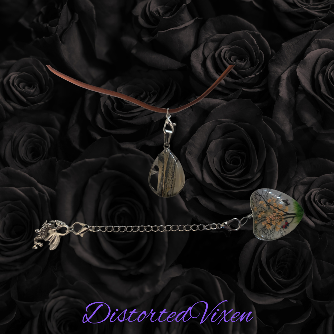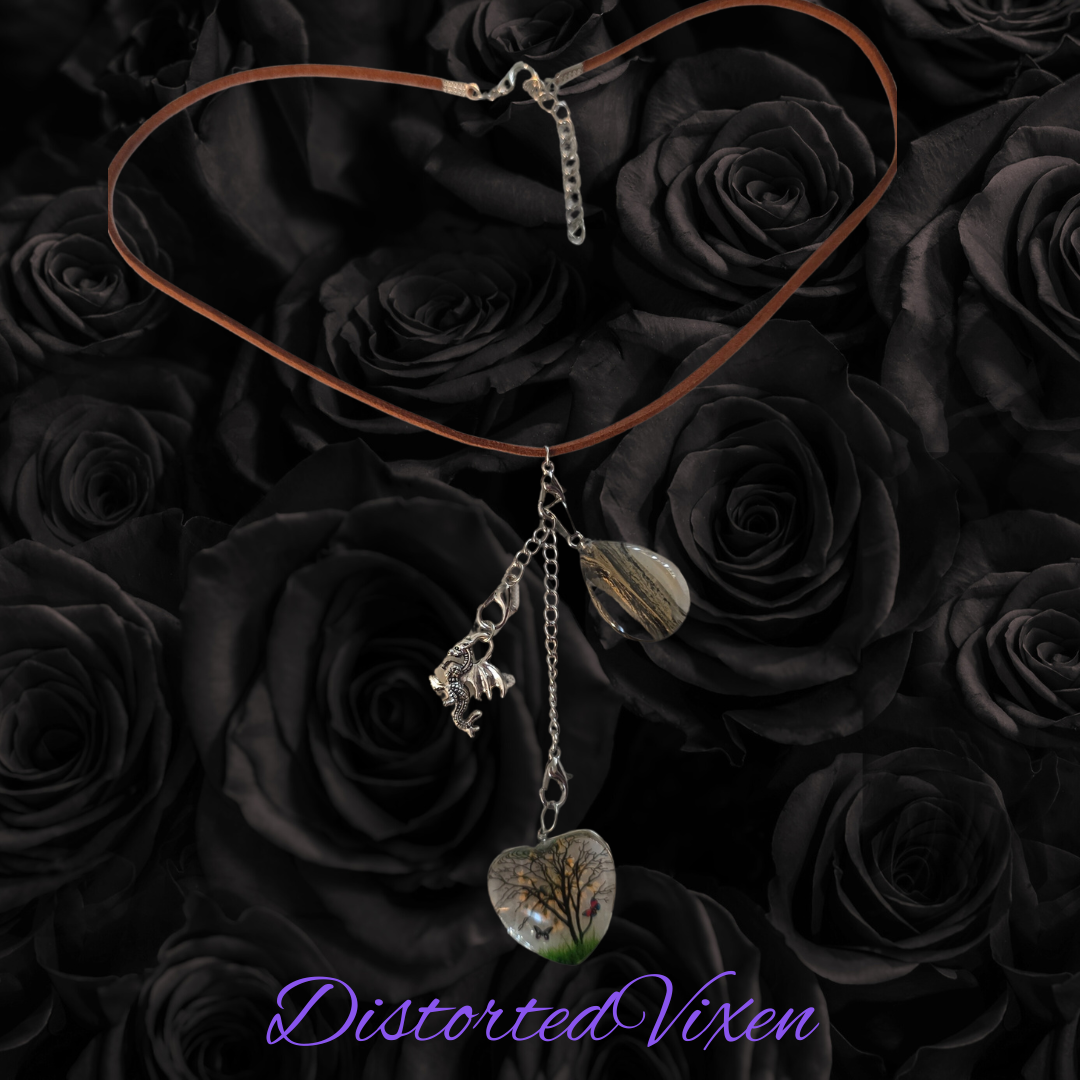 π Tree of Life & Dragon Charm Necklace with Glass Teardrop | Forged from Fire Collection by Distorted Vixeny Distorted Vixen